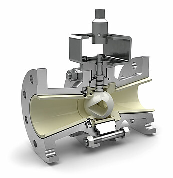 - Keramisch ausgekleideter Kugelhahn für hohe Anforderungen an Verschleißbeständigkeit, Korrosionsfestigkeit und Hochtemperaturstabilität